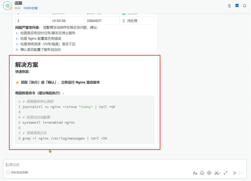 分析告警并生成解决方案