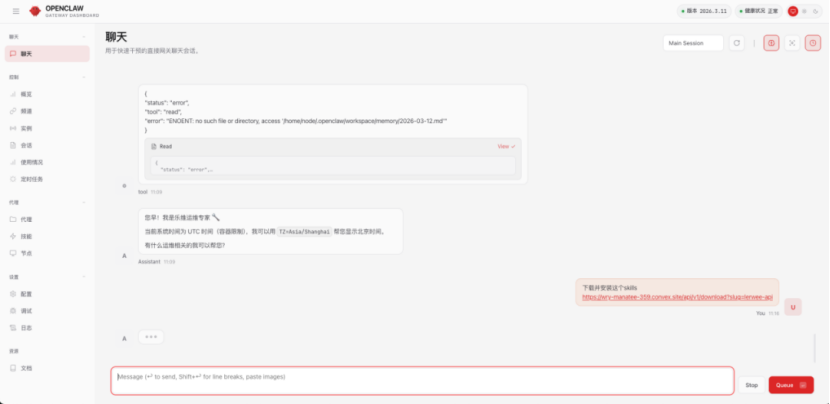 3.将下载链接告诉openclaw
