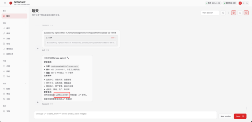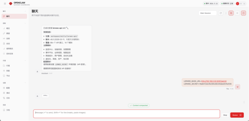 场景描述:Lerwee API Skill适用于Openclaw对接Lerwee运维智能体,通过 API对接,将监控、指标、告警、CMDB 等运维数据汇聚一起,让 Openclaw 能够顺畅对接 Lerwee 运维智能体的全栈能力。