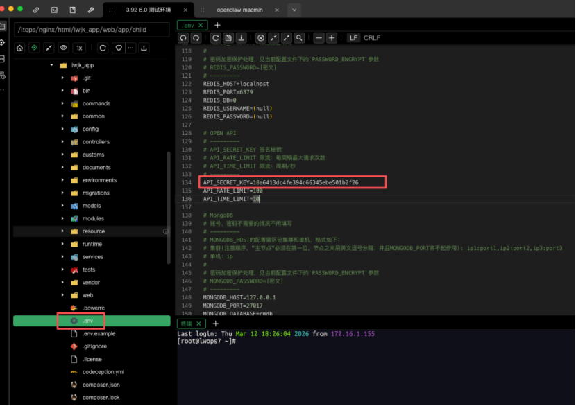 打开 /itops/nginx/html/lwjk_app/.env 在里面找到 API_SECRET_KEY
